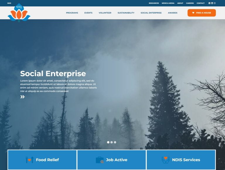 This project showcases the creation of a dynamic website for the NHG, a network of 22 houses across Australia. The site is designed to support, inspire, and grow local communities, with a focus on addressing key challenges in the Gippsland area, including training and employment pathways, social inclusion, and bridging care and service gaps.